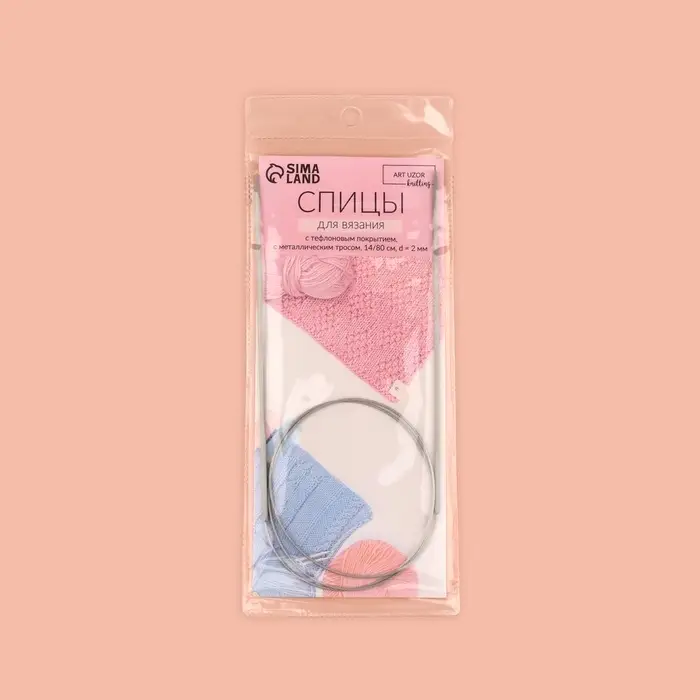 Спицы круговые, для вязания, с тефлоновым покрытием, с металлическим тросом, d=2 мм, 14/80 см