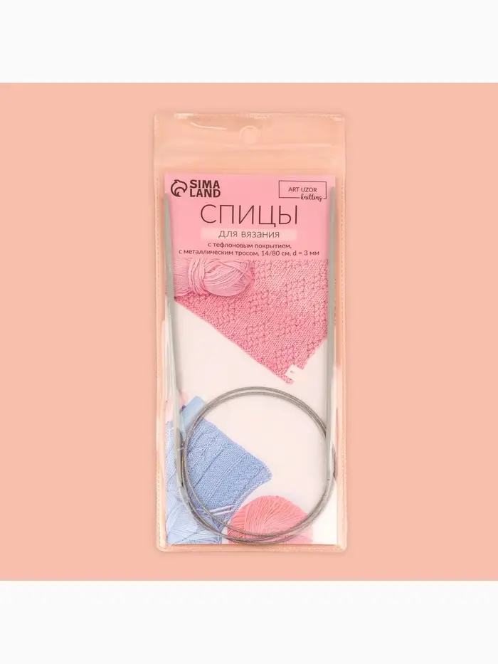 Спицы круговые, для вязания, с металлическим тросом, d = 3 мм, 14/100 см