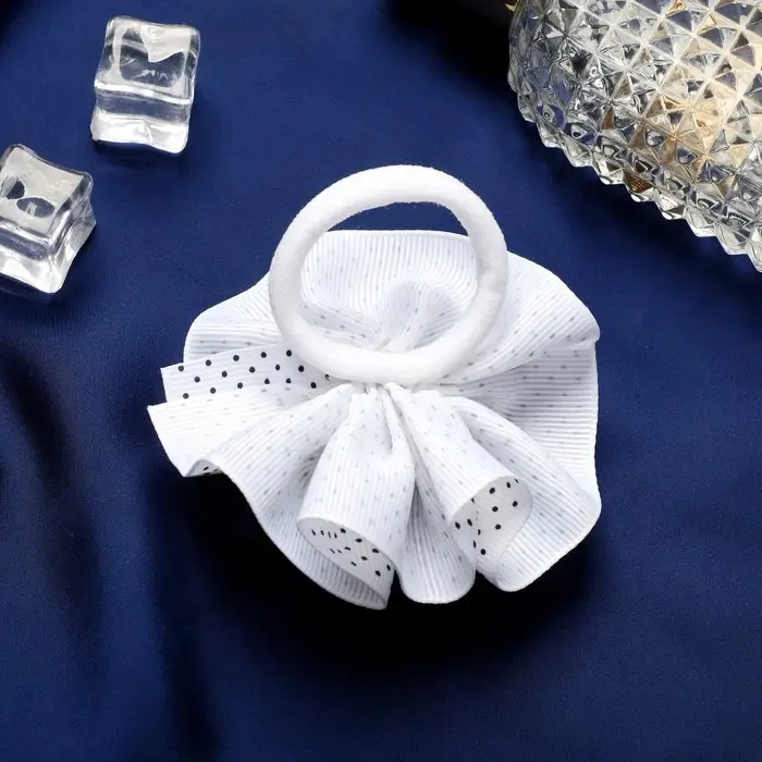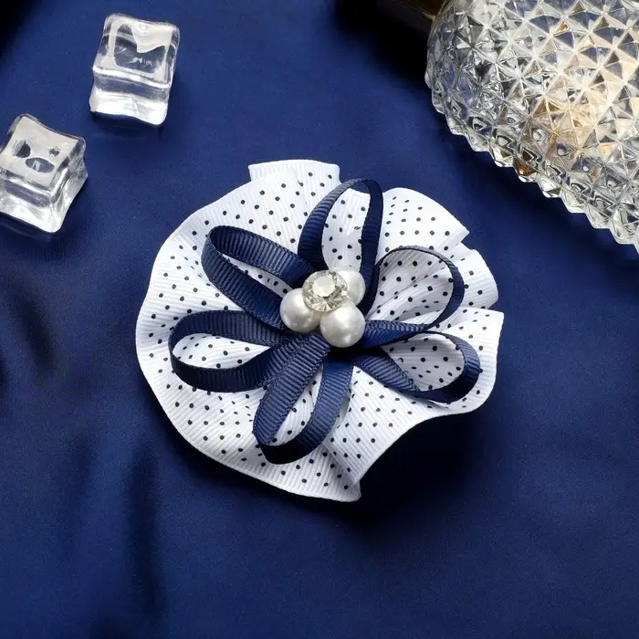 Резинка для волос бант «Школьница», мелкий горошек и бусинки, d=7.5 см, бело-синяя