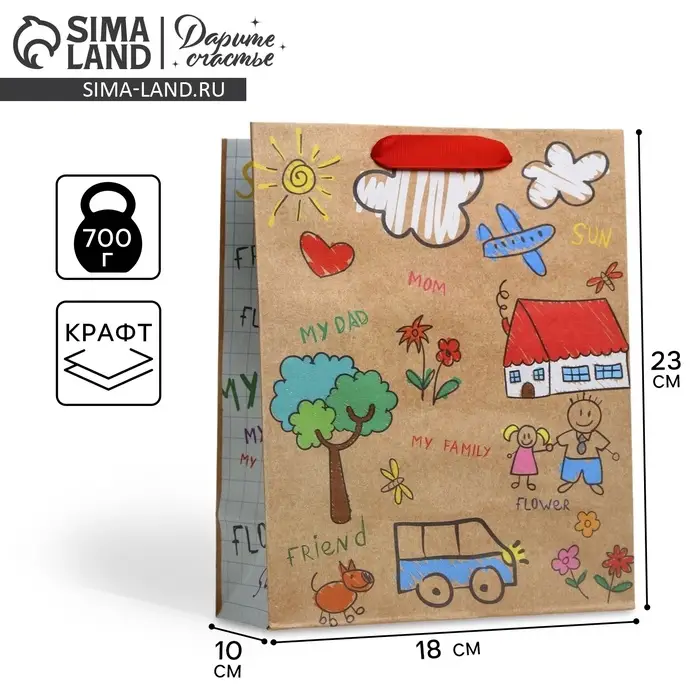 Пакет подарочный крафтовый, упаковка, «My family», MS 18 х 23 х 10 см
