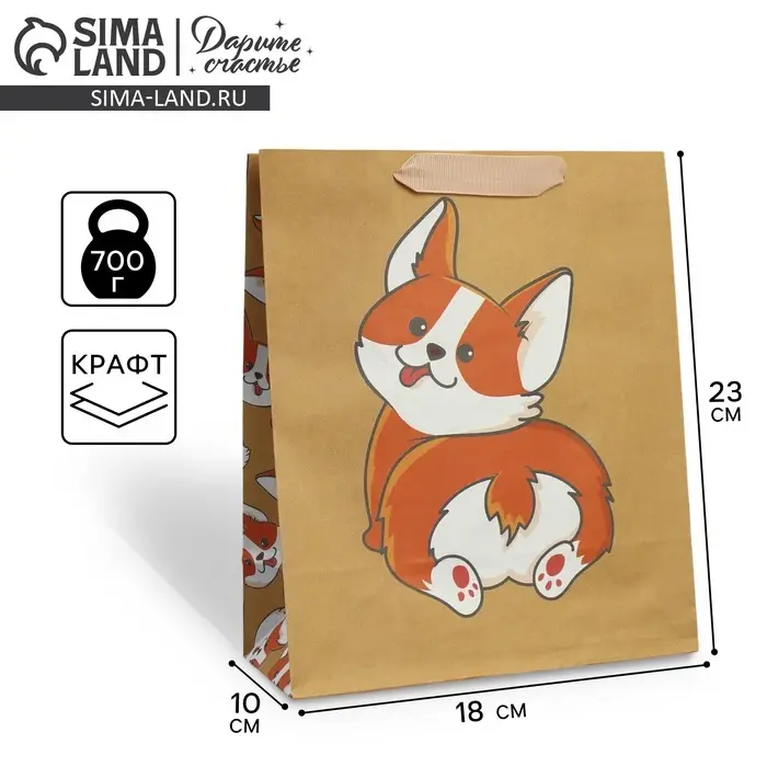 Пакет подарочный крафтовый, упаковка, «Пёсик», MS 18 х 23 х 10 см