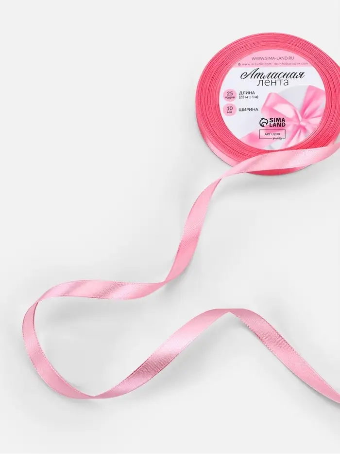 Атласная лента гладкая и приятная на ощупь. Используйте её для отделки изделий, украшения подарков, свадебного оформления, а также в техниках скрапбукинг и канзаши.