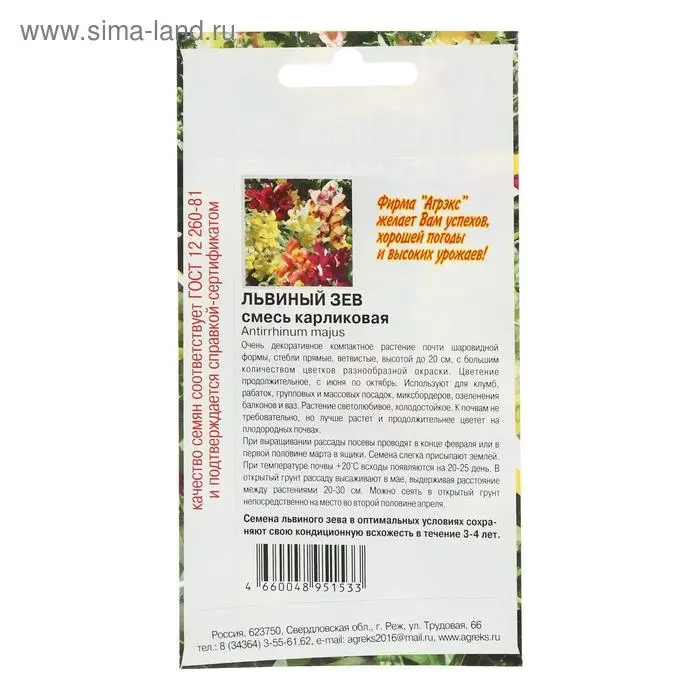 Семена цветов однолетние Львиный зев карликовая смесь 0,1