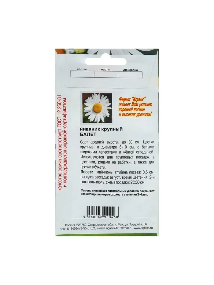 Семена цветов Нивянник, многолетний, белый 0,1 г