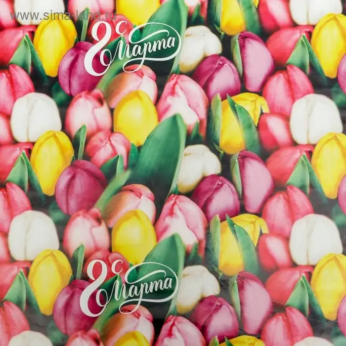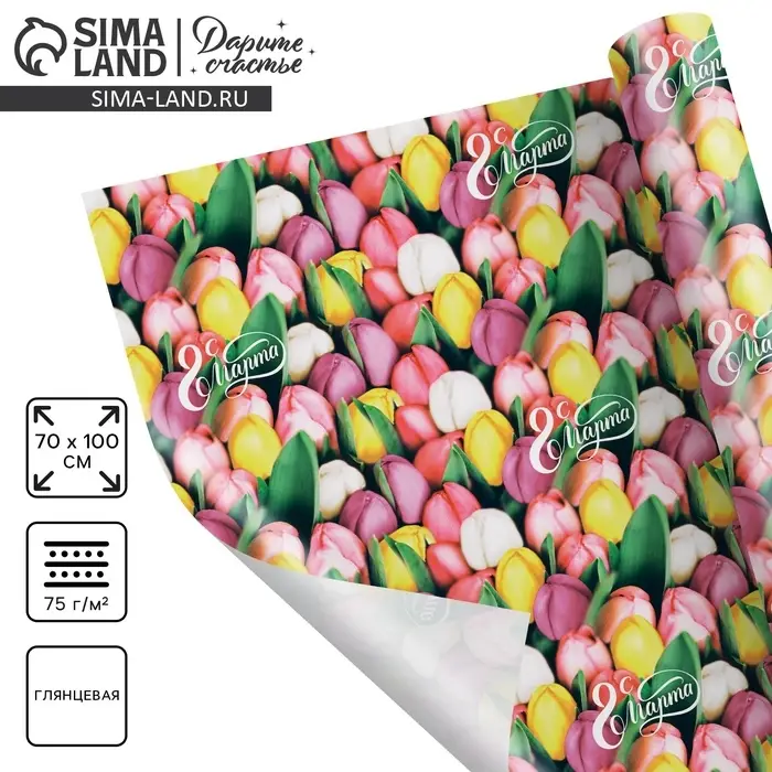 Бумага упаковочная глянцевая «Тюльпаны с 8 марта», 70×100 см