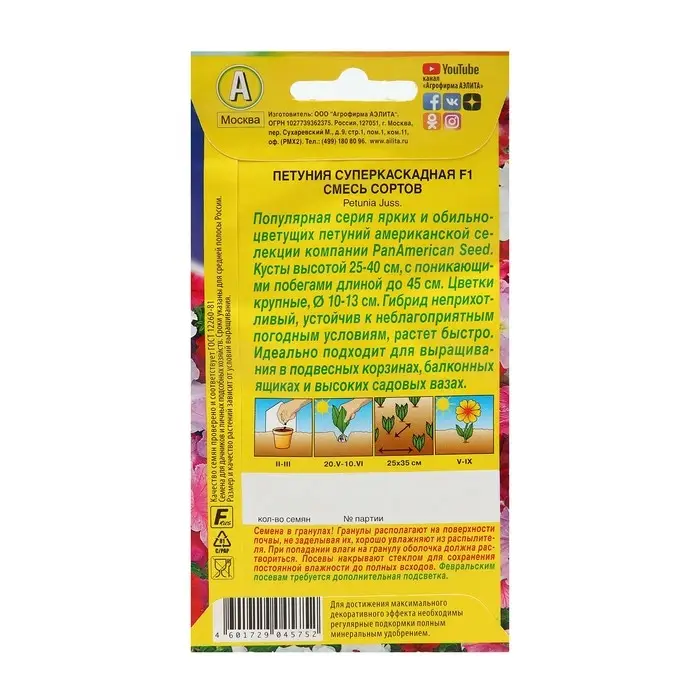 Семена Петуния Суперкаскадная F1, смесь окрасок 10 шт