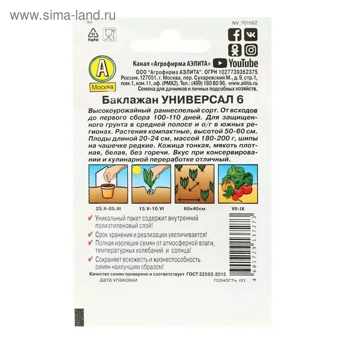 Агрофирма АЭЛИТА | 1 шт. |