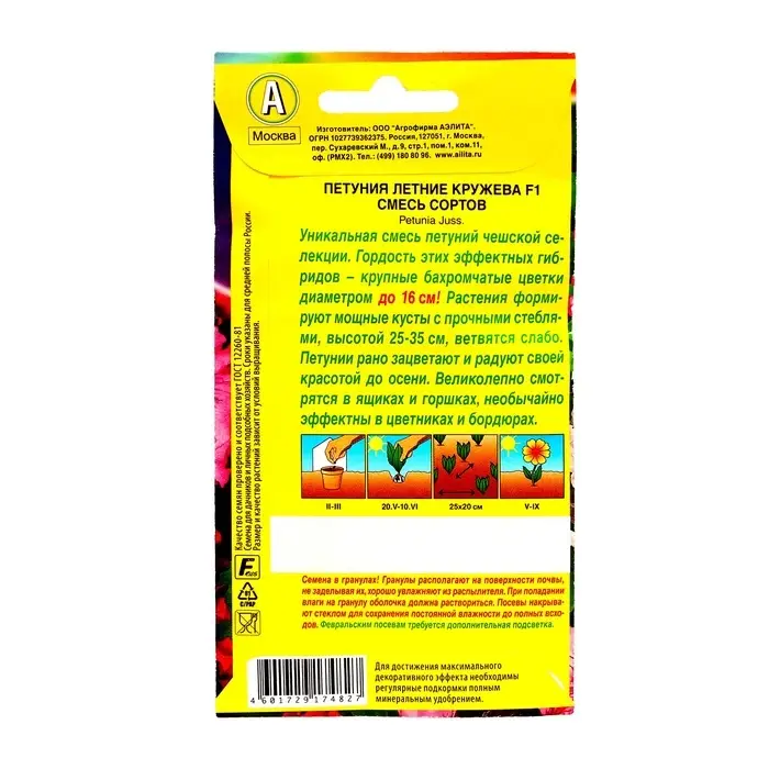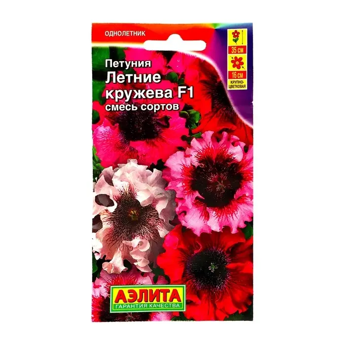 Семена Цветов Петуния Летние кружева F1 крупноцветковая, смесь окрасок, 7 шт