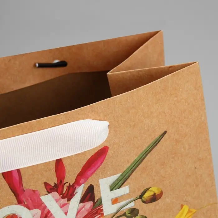 Пакет подарочный крафтовый, упаковка, «Love and flowers», 23 х 27 х 11.5 см