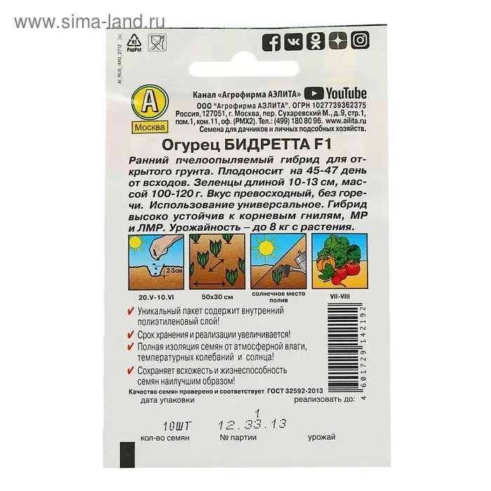 Семена огурца "Бидретта", "Лидер", F1, 10 шт.