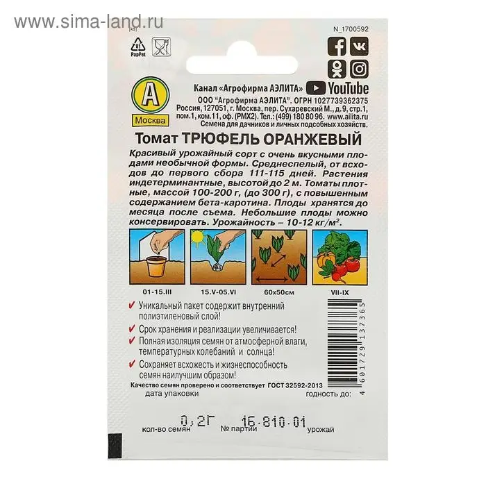 Семена Томат "Трюфель", оранжевый, индетерминантный,высокорослый, 0,2 г