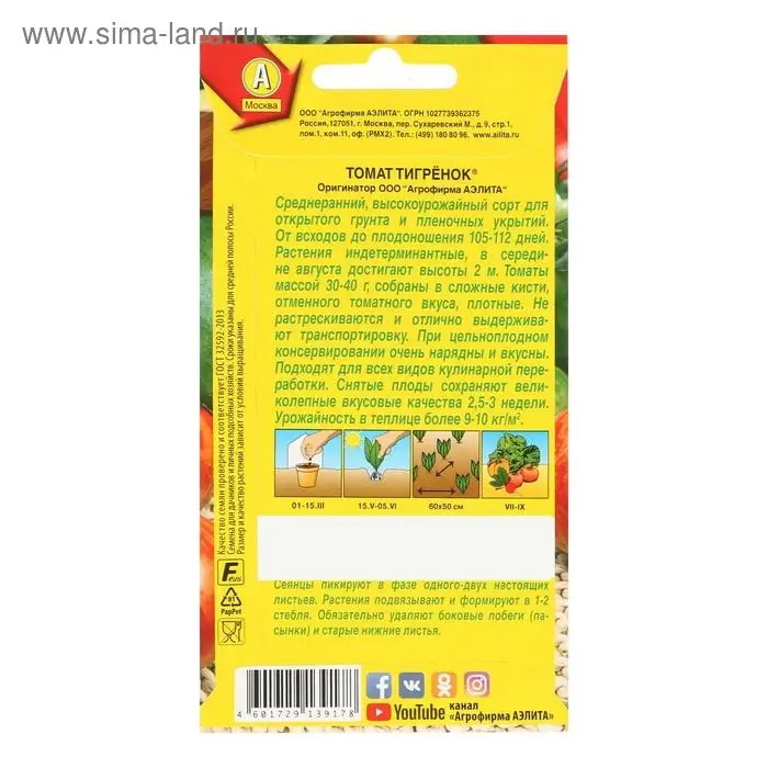 Семена Томат Тигренок, 20 шт.
