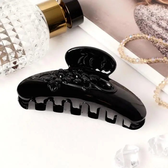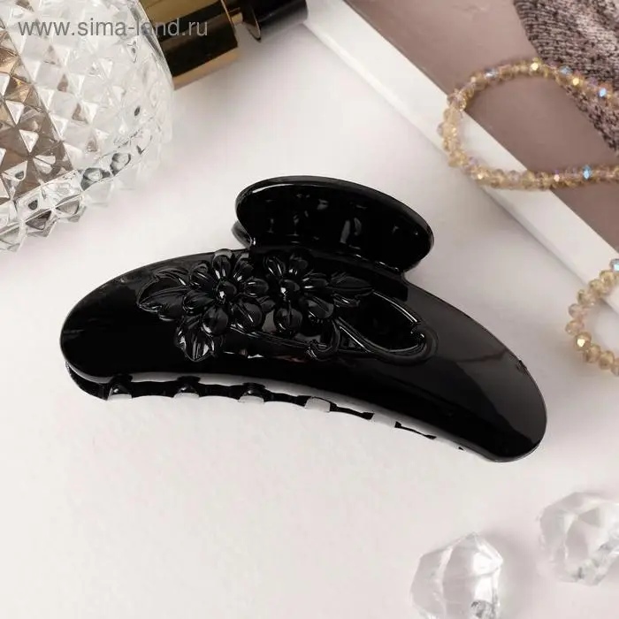 Крабик для волос «Глянец», ранние ромашки, 9.5 см, чёрный