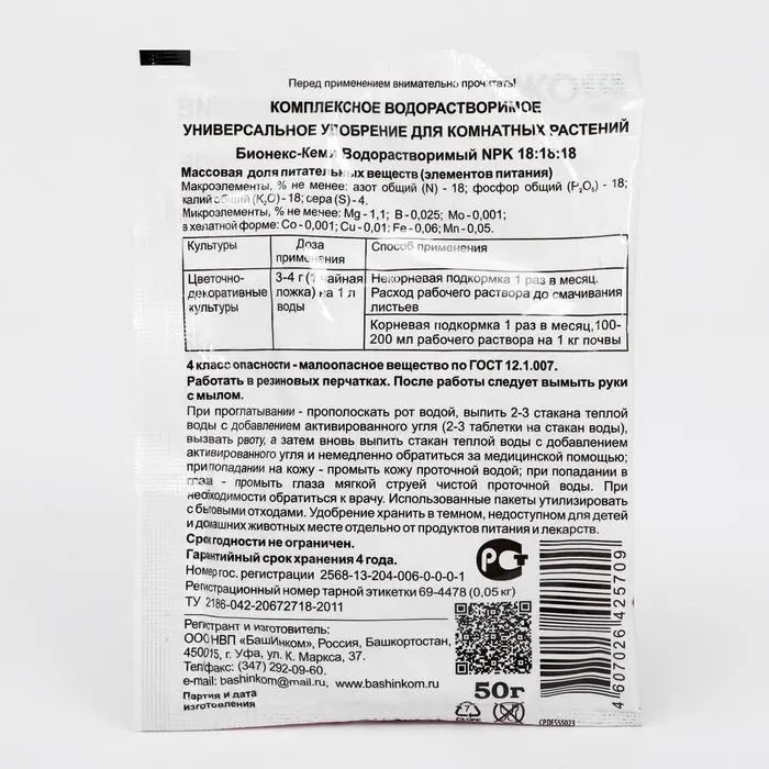 Бионекс-Кеми восполняет недостаток макро- и микроэлементов у комнатных растений и предотвращает связанные с ним хлорозы, повышает декоративность, усиливает иммунитет.