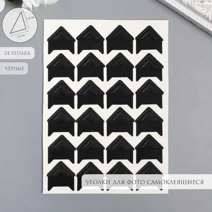 Набор уголков с кармашком для фотографий 24 уголка "Стиль" чёрный 12,5х9 см