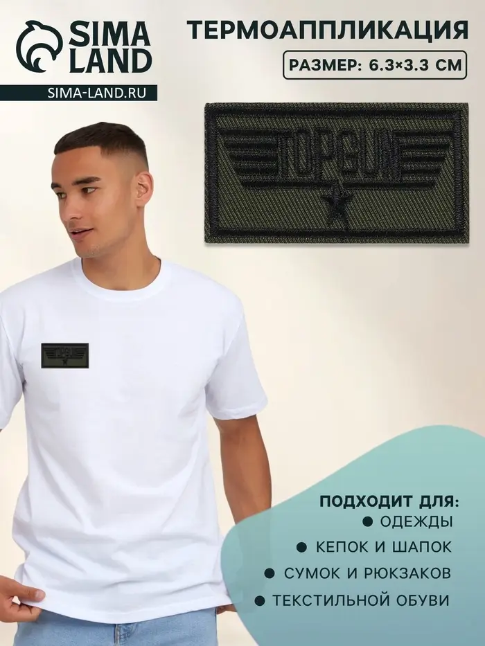 Термоаппликация Topgun, 6.3×3.3 см, фасовка 10 шт., хаки