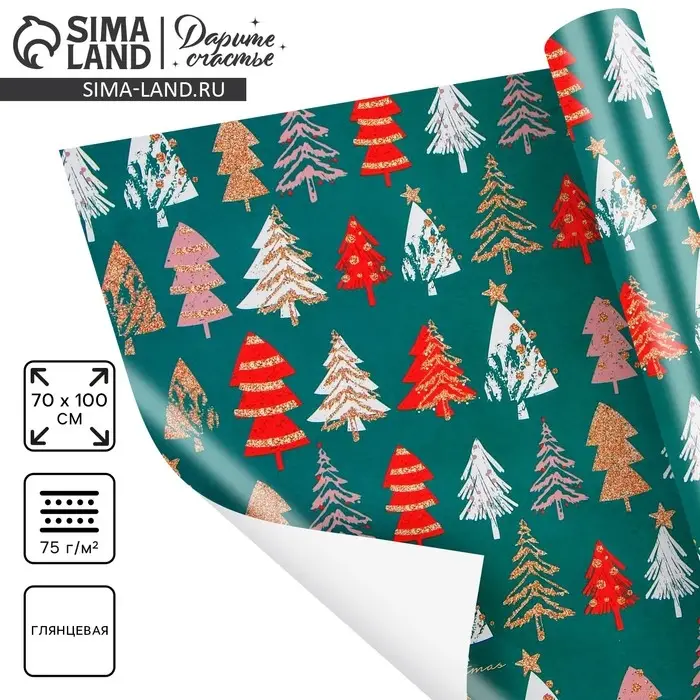 Упаковочная бумага на новый год «Ёлочки», 70 х 100 см, глянцевая