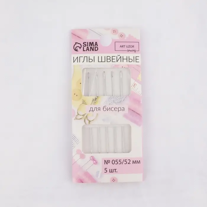 Иглы швейные для бисера, d=0.55 мм, 5.2 см, 5 шт.
