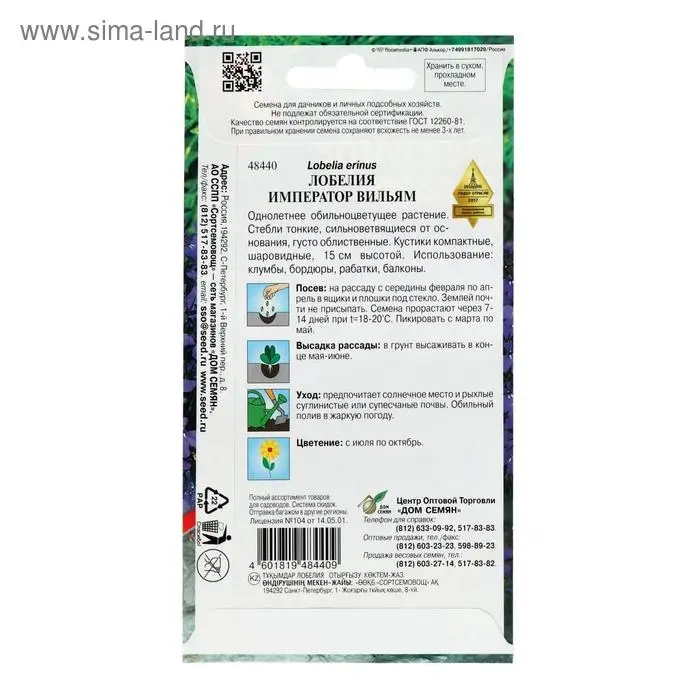 Семена цветов Лобелия "Император Вильям", 1000 шт