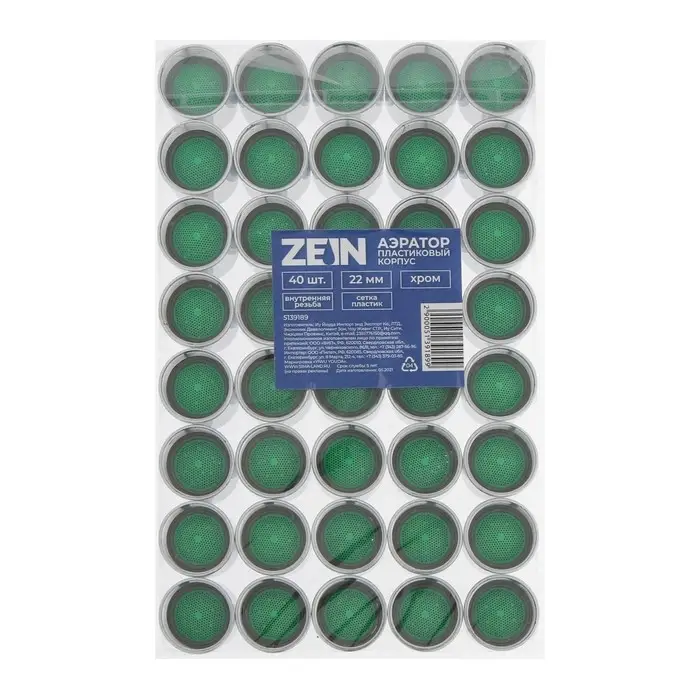 Аэратор ZEIN, внутренняя резьба, d=22 мм, сетка пластик, корпус пластик, цвет хром