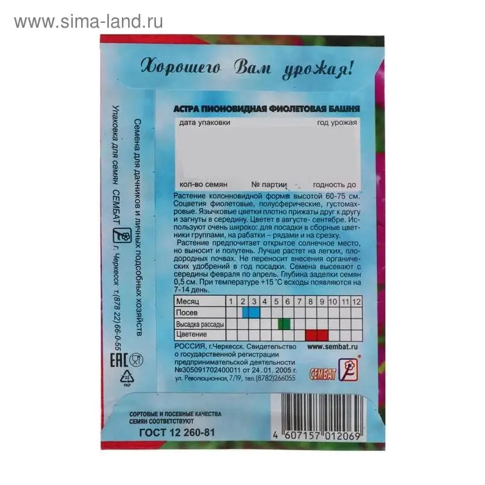 Семена цветов Астра пионовидная "Фиолетовая Башня", 0.2 г