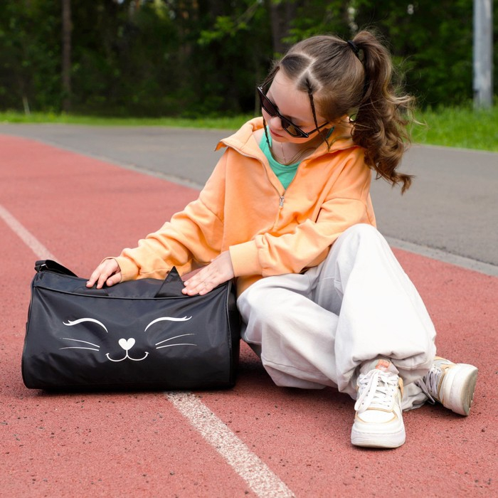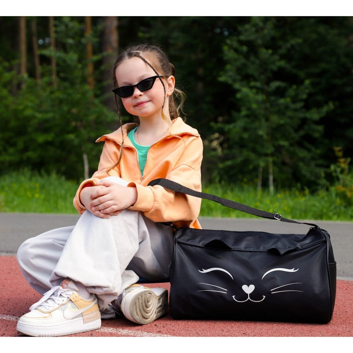 Сумка детская спортивная для девочки на молнии, наружный карман, цвет чёрный