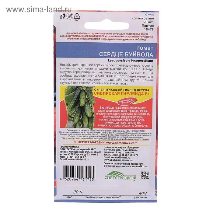 Семена Томат "Сердце буйвола",индетерминантный,высокорослый, 20 шт