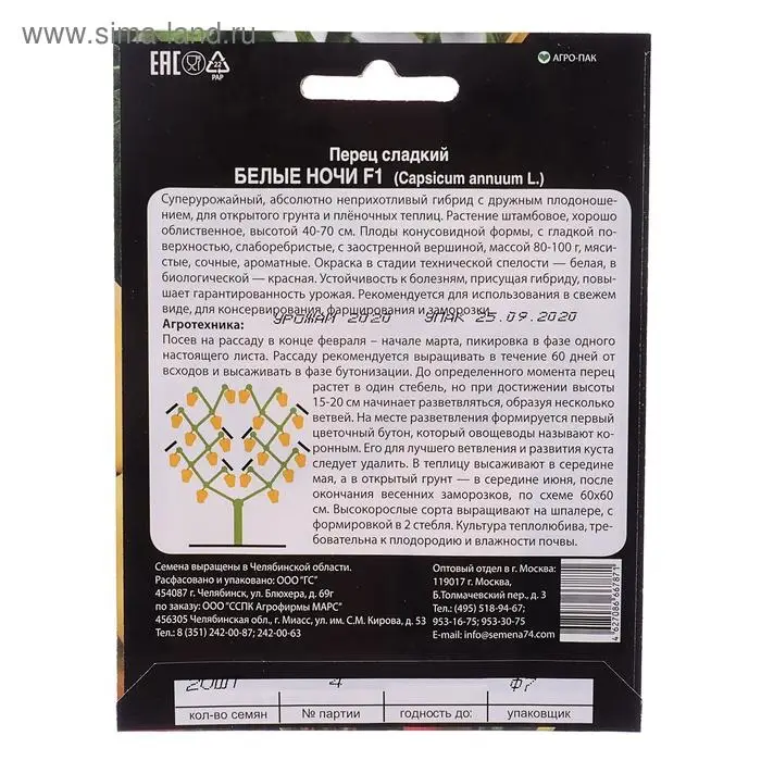 Семена Перец сладкий "Белые Ночи", F1, 20 шт