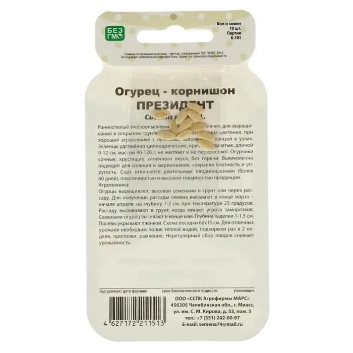 Семена Огурец "Президент", корнишон, серия Банка, 10 шт
