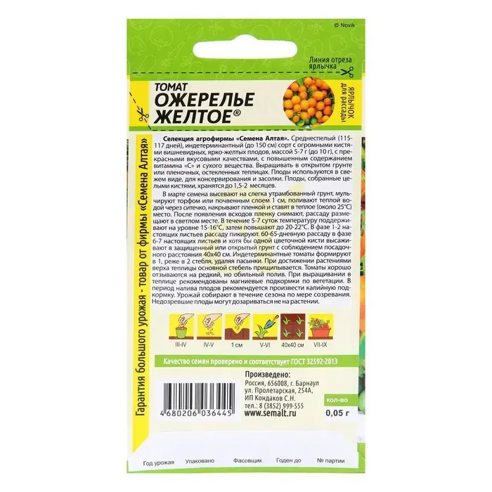 Семена Томат "Ожерелье желтое", 0,05 г