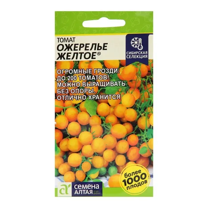 Сорт селекции Агрофирмы «Семена Алтая». Среднеспелый (115-117 дней), индетерминантный (до 150 см) сорт с огромными кистями вишневидных, ярко-желтых плодов, массой 5-7 г (до 10 г), с прекрасными вкусовыми качествами, с повышенным содержанием витамина «С» и сухого вещества.