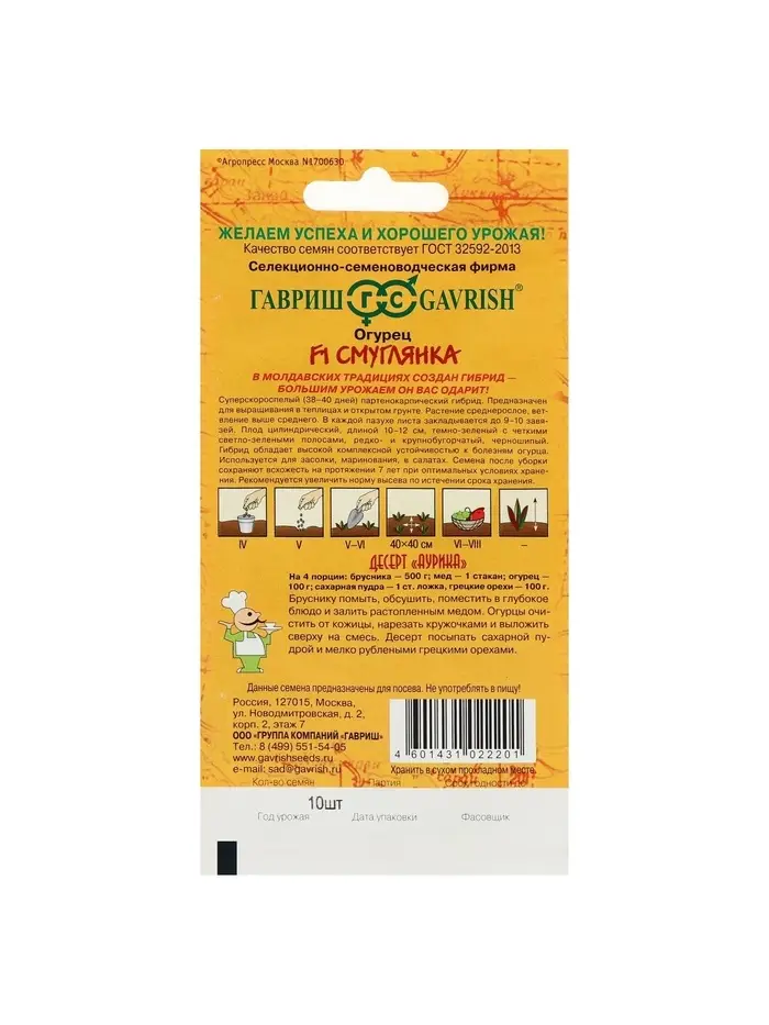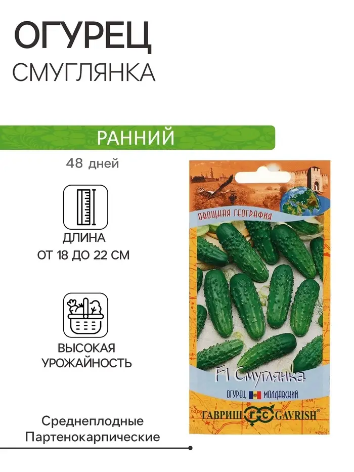 Семена Огурец "Смуглянка", F1, корнишон, серия География, 10 шт