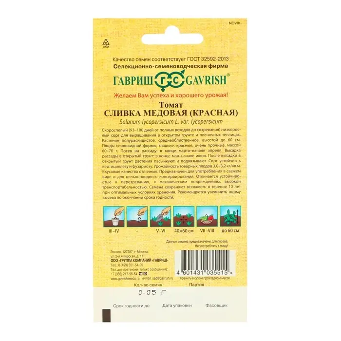 Семена Томат "Сливка медовая (красная)", 0,05 г