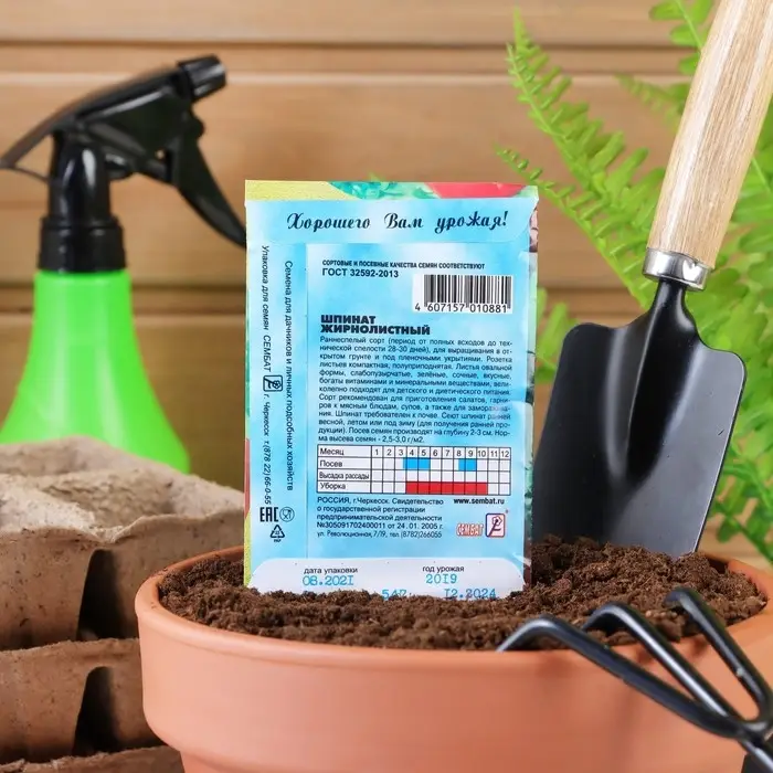 В южных регионах высевают семена в открытый грунт апреле, севернее – в мае, когда минует опасность заморозков. Норма высева — 0,5-0,6 г/м2. Семена заделывают на глубину около 2-3 см. Всходы появляются в среднем через две-три недели после посева. Чтобы ускорить прорастание семян, их замачивают в воде перед посевом, меняя ее 2-3 раза, время замачивания не менее суток. Проводят прореживания. С появлением всходов растения прореживают на 5-7 см одно от другого, 3-4-го листа — на 15-20 см. Шпинат теплолюбивое растение, предпочитающее хорошо освещенные солнцем участки, не переносящее тяжелые почвы. Лучше всего удается на достаточно плодородных среднесуглинистых или легких почвах. Требует регулярного полива. Для растения характерен не ослабляющийся рост вегетативной массы во время цветения. Уборку проводят выборочно, многократно, до начала цветения. Высокие летние температуры заставляют растение идти в стрелку, поэтому повторный посев рекомендуем только в начале августа. Требователен к влаге и почвенному плодородию.