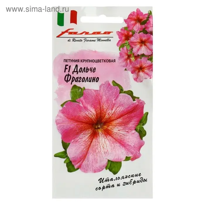 Крупноцветковые гибриды из итальянской серии "Дольче" славятся невероятно нежными пастельными оттенками, редко встречающимися среди петуний. Из-за неравномерного окрашивания (тона переходят из более насыщенных и плотных в более светлые и легкие) цветки кажутся воздушными, полупрозрачными, будто сияют, пропуская солнечный свет. Эффект усиливает ярко-выраженное жилкование, интенсивность которого меняется от цветка к цветку. Растение образует аккуратные кустики высотой 20-30 см, усыпанные пурпурно-розовыми цветками с желтым центром диаметром 7-8 см. Гибриды неприхотливы, обильно цветут и даже в ненастную погоду сохраняют свою привлекательность. Посев проводят поверхностно, под стекло, с февраля по март. После появления всходов стекло убирают. При зимнем посеве всходам необходима подсветка. Всходы появляются через 7-12 дней. На постоянное место высаживают, когда минует опасность заморозков. Цветет с конца мая весь сезон. Светолюбива и достаточно засухоустойчива. Предпочитает легкие, плодородные, хорошо дренированные почвы. Украсит клумбы, вазоны, балконные ящики, подоконники, низкорослые бордюры. Рекомендуется для профессионального озеленения и выращивания на продажу.