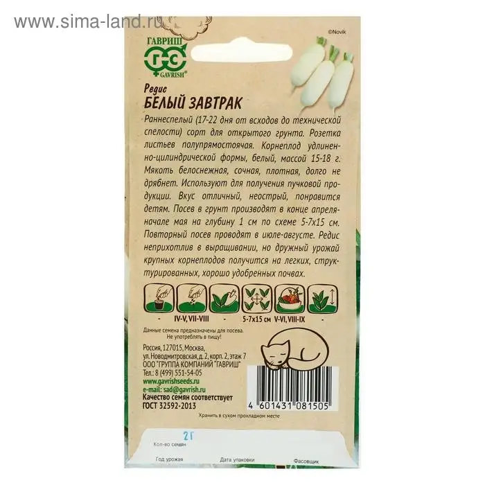 Семена Редис "Белый завтрак", серия Ленивый огород, ц/п, 2 г