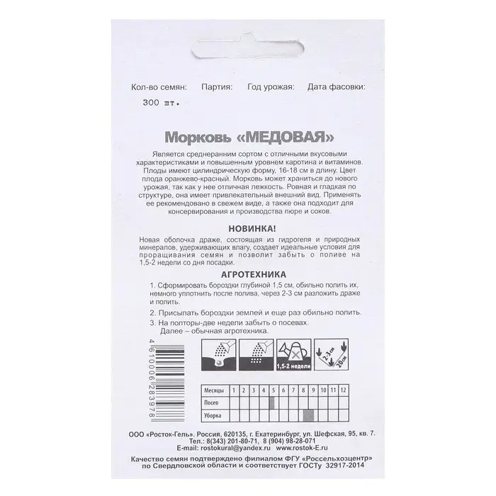 Семена Морковь "МЕДОВАЯ" гелевое драже