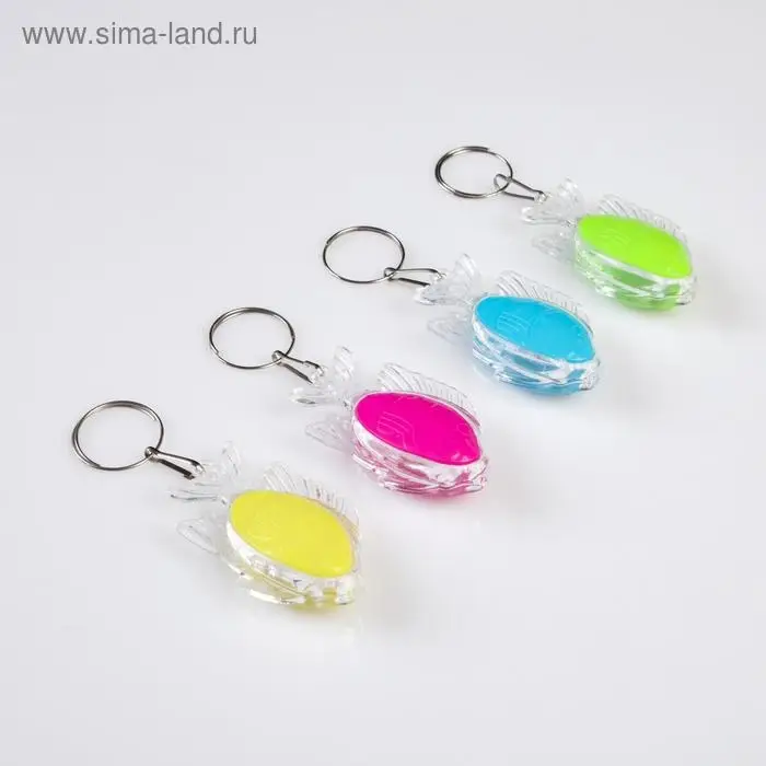 Фонарик брелок для ключей на кольце «Рыбка», 1 режим, 2×AG13, 3.5×5.5 см, МИКС
