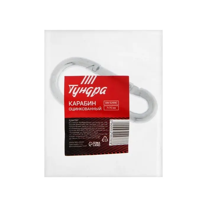 Карабин ТУНДРА krep изготовлен из высококачественного металлас оцинкованным покрытием, что защищает его от коррозии.