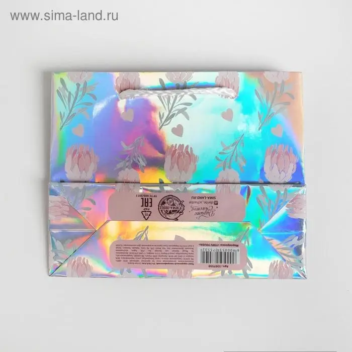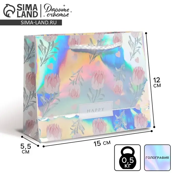 Пакет подарочный голографический, упаковка, «Happy», 15 х 12 х 5.5 см