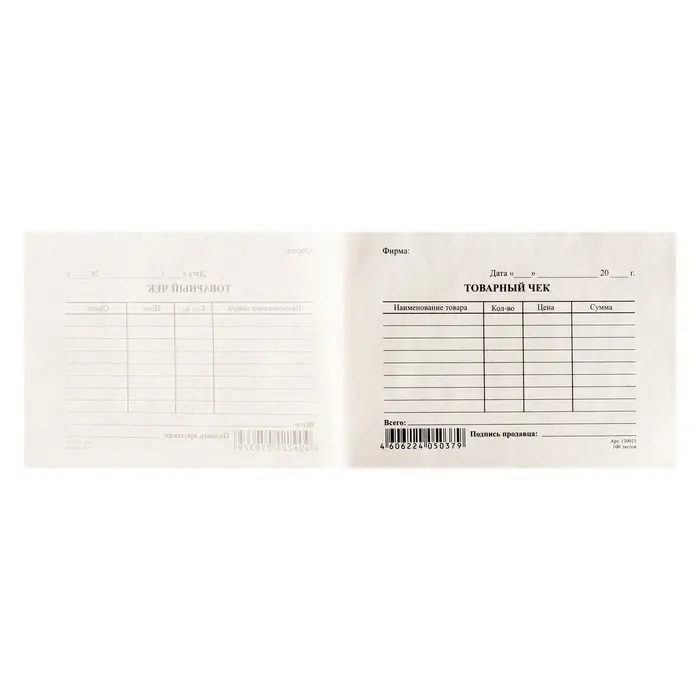 Бланк «Товарный чек» Calligrata, А6, газетка, 100 экземпляров
