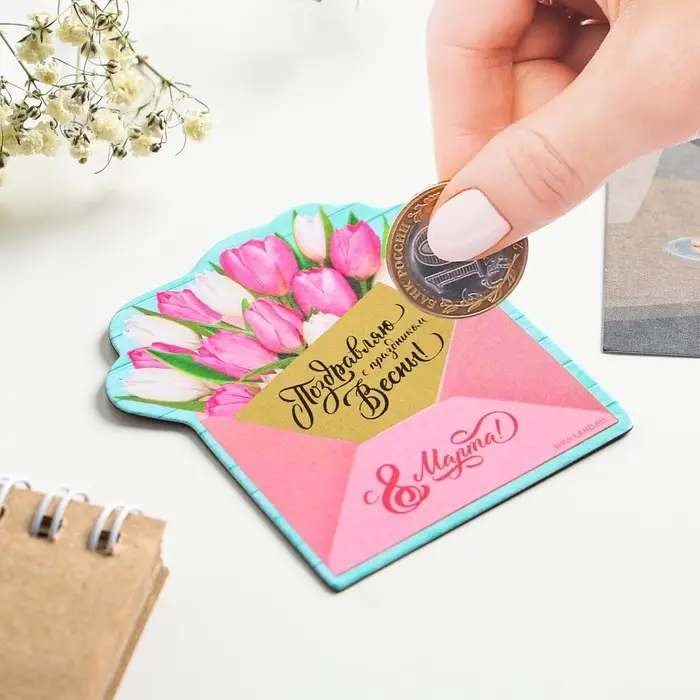Магнит со скретч-слоем «Конверт. 8 Марта», 6.8×6.9 см