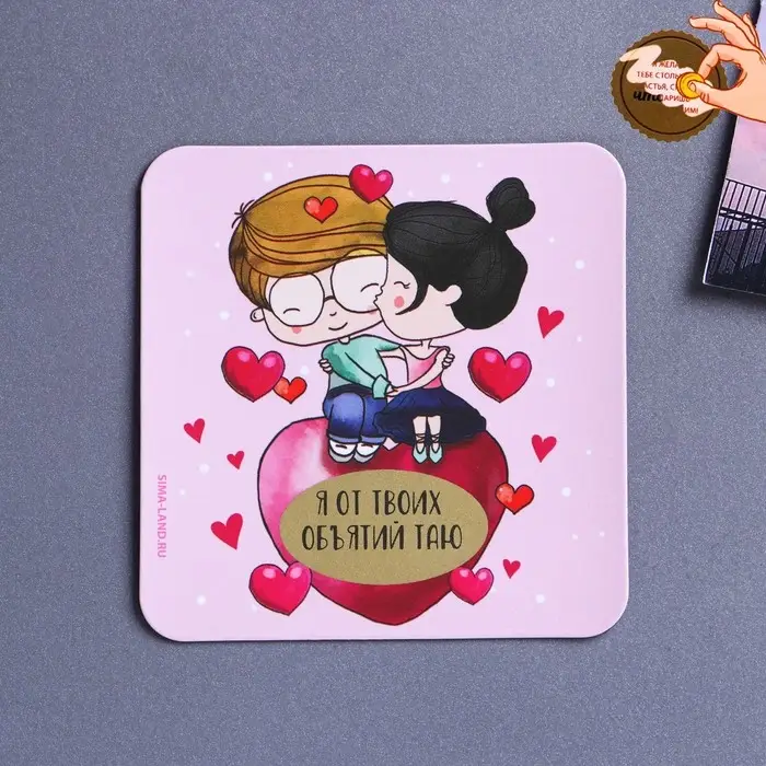 Магнит на холодильник со скретч слоем «Парочка», 7 х 7 см