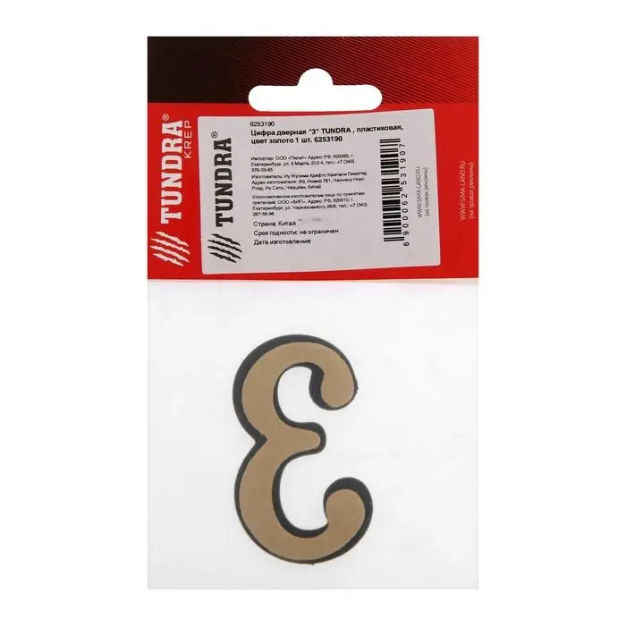Цифра дверная 3 ТУНДРА, пластиковая, цвет золото 1 шт.