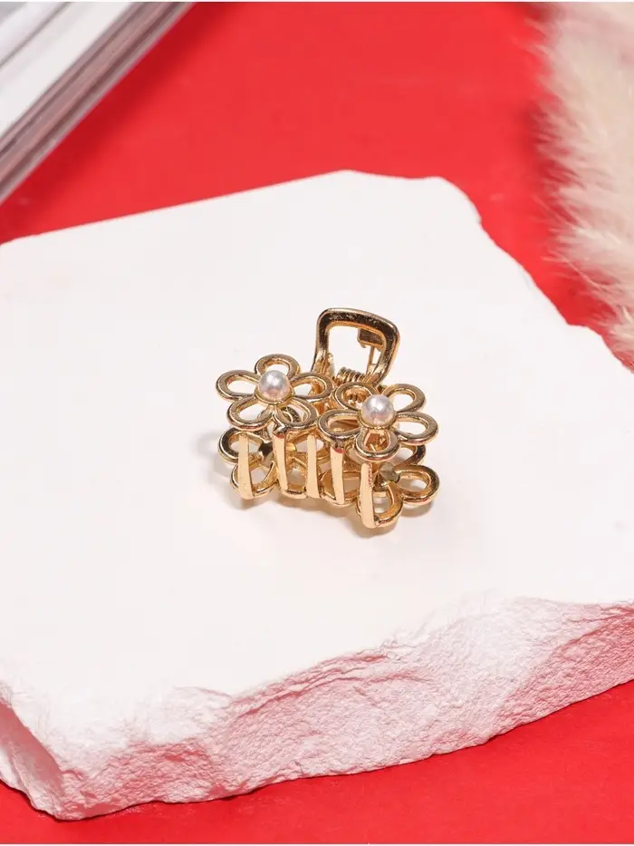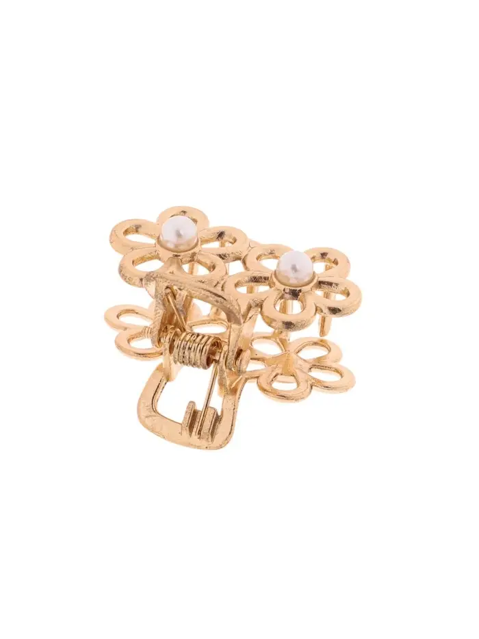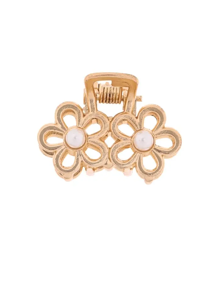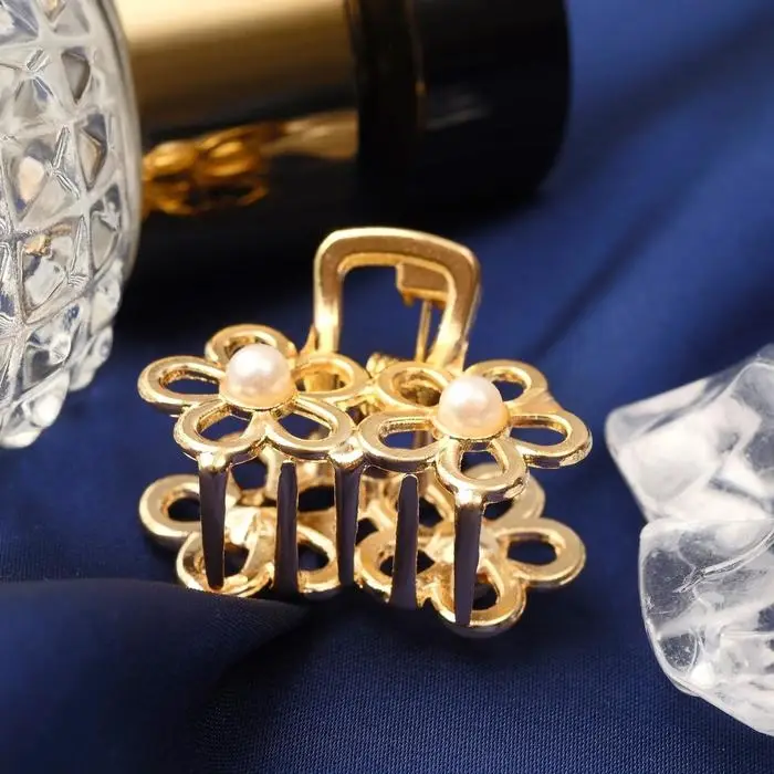 Крабик для волос «Маргарита», ромашки жемчуг, 2.5 см, золото