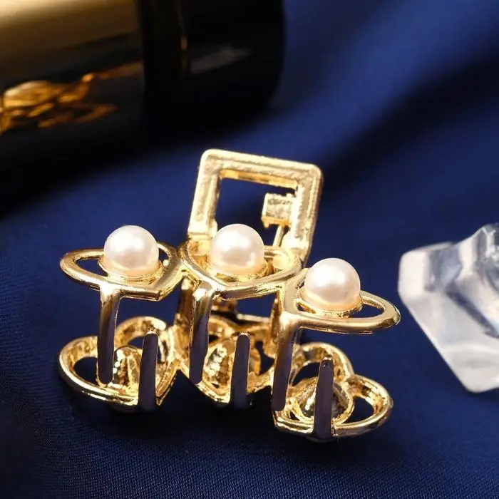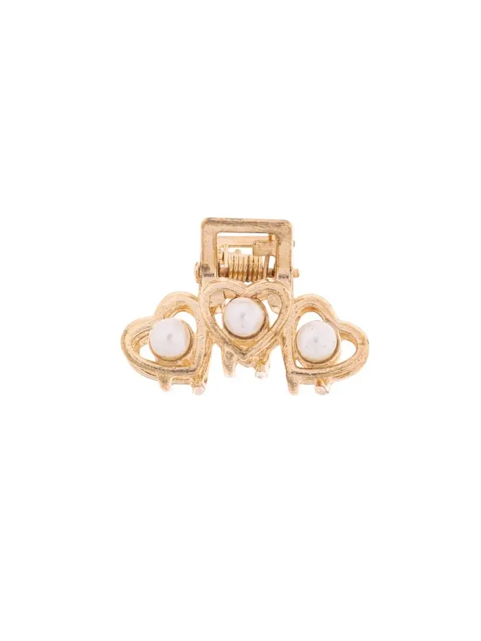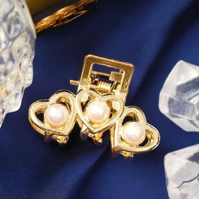 Крабик для волос «Маргарита», сердечки жемчуг, 3 см, золото