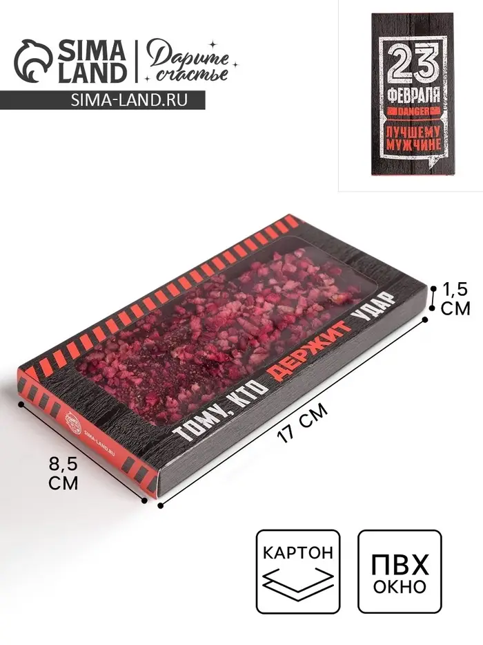 Коробка для шоколада, кондитерская упаковка, «23 февраля», с окном, 17.3 х 8.8 х 1.5 см