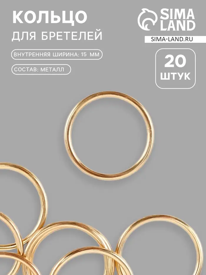 Кольцо для бретелей, металлическое, 15 мм, 20 шт., цвет золотой