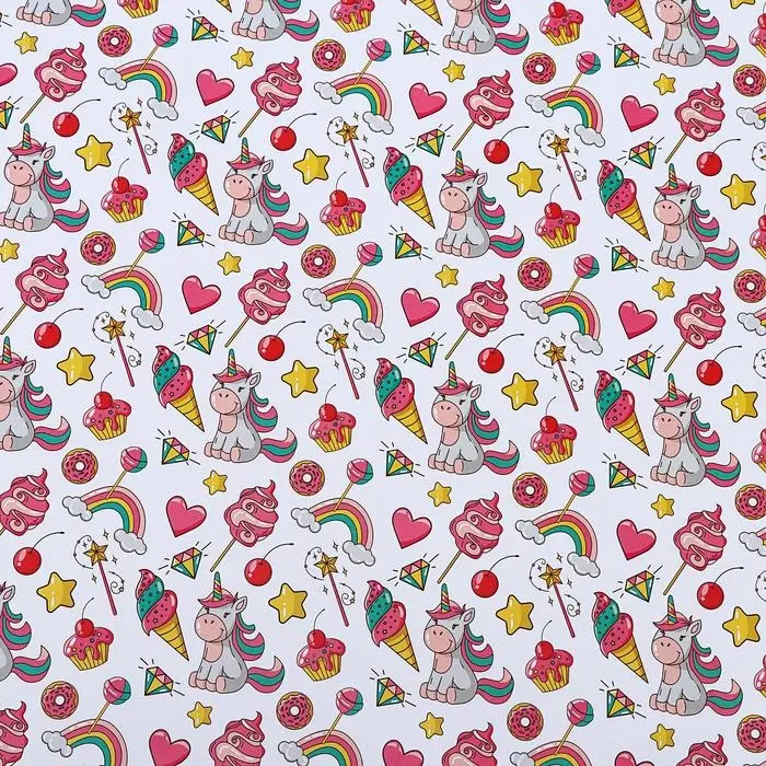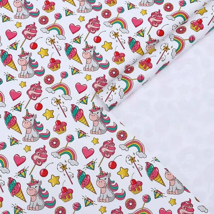 Бумага упаковочная глянцевая "Единороги", 50 х 70 см