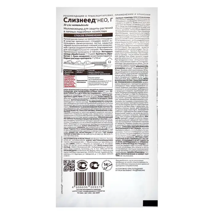 Средство от слизней "Август" "Слизнеед НЕО", 14 г